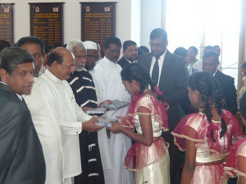 | 1) Chief Minister Hon. Sarath Ekanayake is welcome by the Chairman Hon. Mahinda Abeykoon | 4) National Anthem and the Provincial Song is Sung by the Students of the Risikala Academy for Aesthetic Studies | 7) Students at the Risikala Aesthetic Academy receiving gifts from Hon. Chief Minister and the Hon. Chairman |