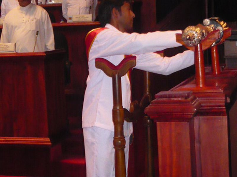 | 3) Chief Secretary, Council Secretary,Secretaries to the Provincial Ministries and All the secretaries representing local government bodies stood attention for the Nation Anthem | 6) Recitation of "Jayamangala Gatha" and "Devo Wassatu Kalena" at the door step of the Assembly Hall | 9) Announcement of the proclamation of the opening session by the Assembly Secretary |